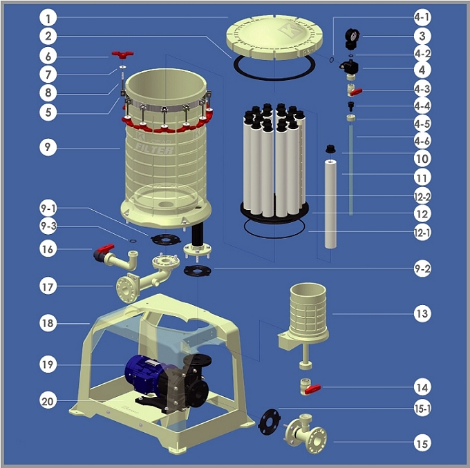 | 4-1 | 排氣閥主體O環(huán) | 9-2 | 濾桶入口墊片 | 17 | 出口管 |